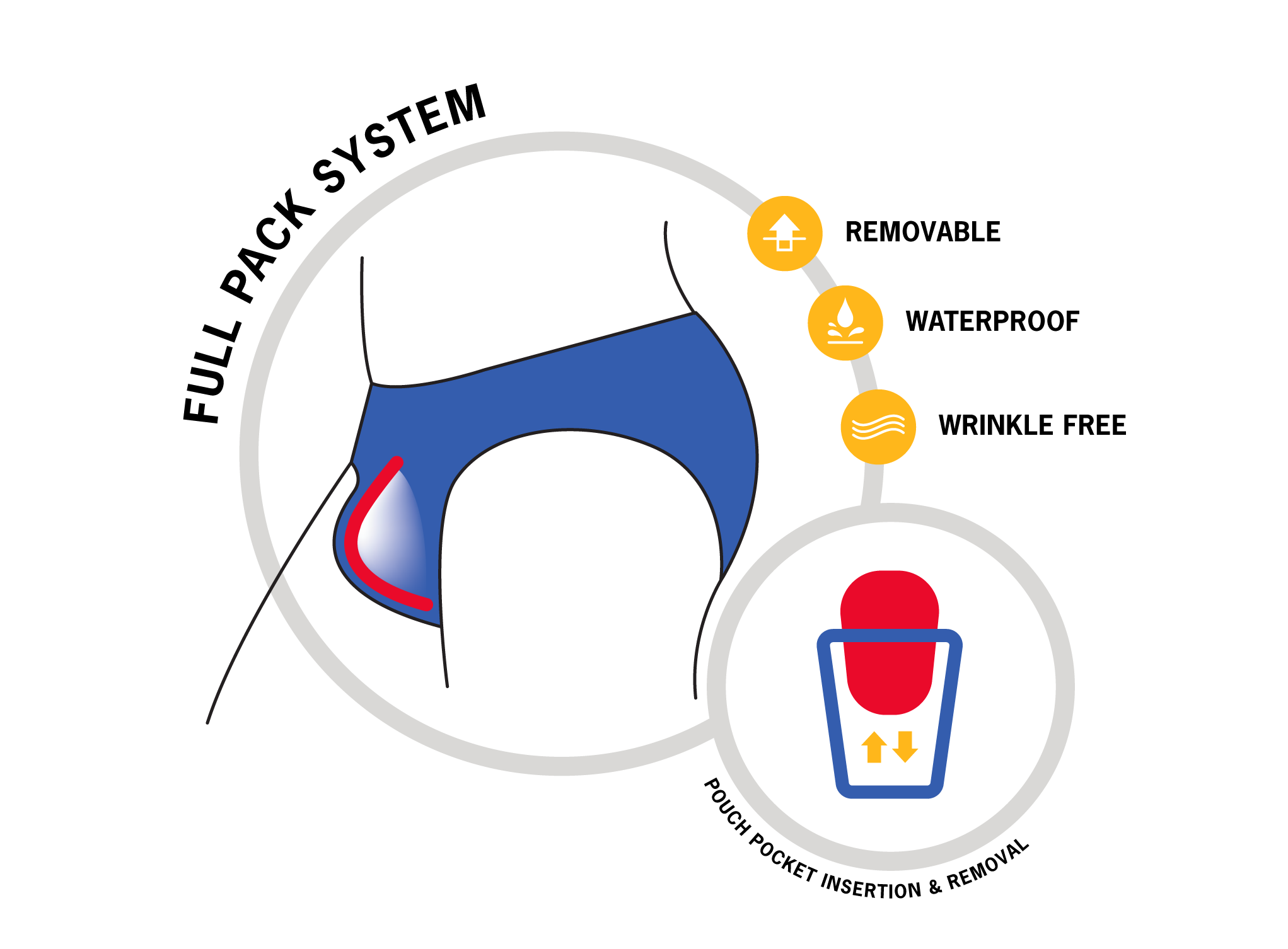 - The “Full Pack” system is removable. Feel free to leave it in its place, or simply pull it out from its pocket, located in the interior of the front side of the swimsuit.
