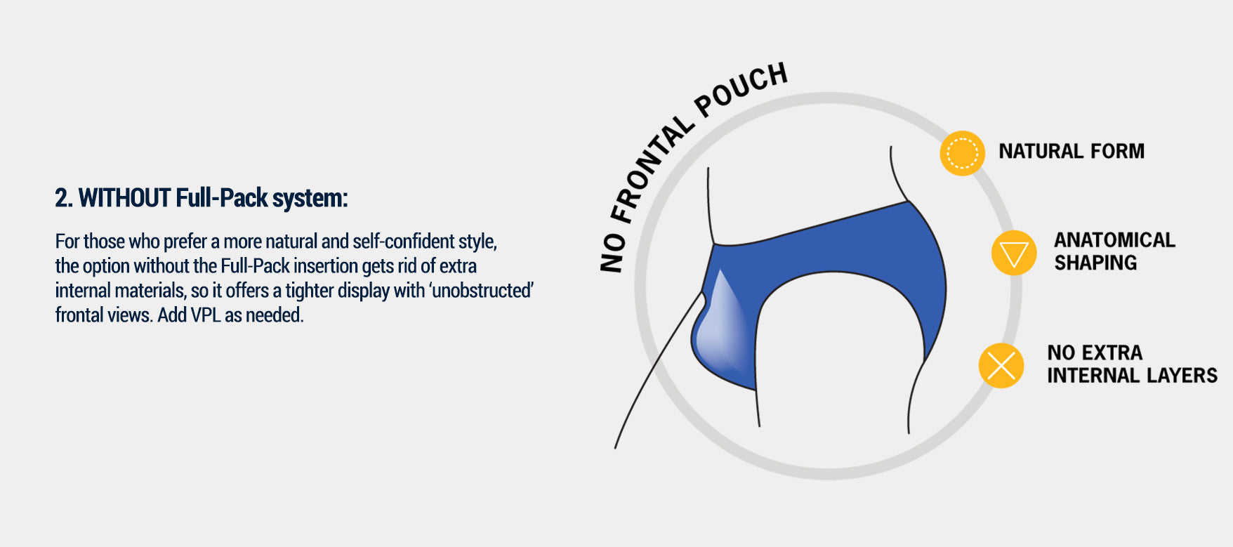 - This provides a padded frontal pouch that offers protection, while also a fuller feel in the right place. It also acts as a "modesty pad" that delivers a classier and more tasteful look.