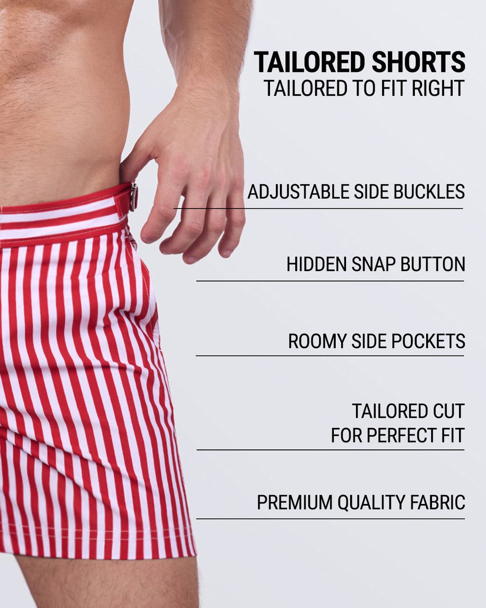 Design and form meet comfort and functionality in a men’s bathing suit. We remixed the construction of men’s classy tailored trousers and came up with these ready-to-wet guys. You can think of DC2® Tailored Shorts as funky dress shorts with swimming powers. These high-quality men swim trunks offer a carefully crafted tailored cut that delivers effortless style with a perfect fit.